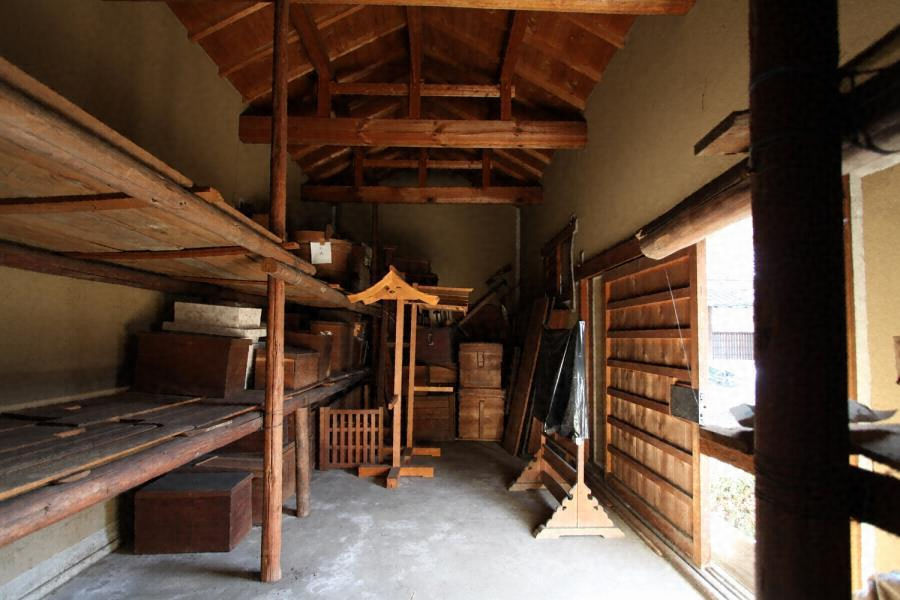 敷地東辺南寄りに西面して建つ。土蔵造平屋建、桟瓦葺で、窓に持送付小庇を付す。外壁は漆喰で軒裏まで塗込めて軒下に鉢巻、腰に水切を廻し、東面の腰を竪板張とする。内部は土間で、壁を大壁中塗、和小屋組とする。敷地東側路地沿いの景観を形成する。