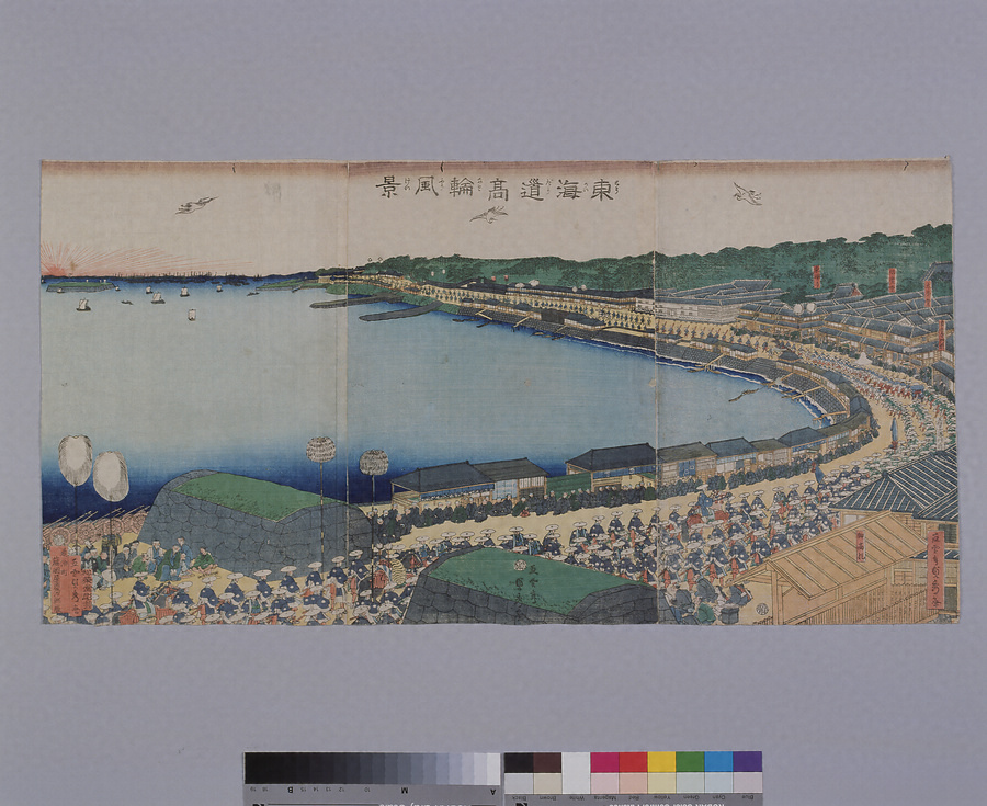 版画 東海道高輪風景 五雲亭貞秀斎(3枚続き)
