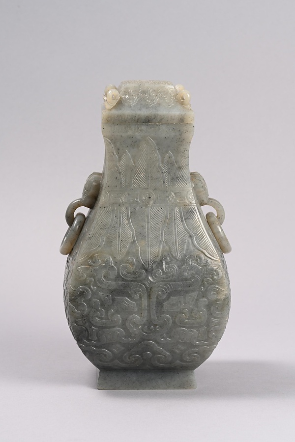 獣面彫墨玉方壺