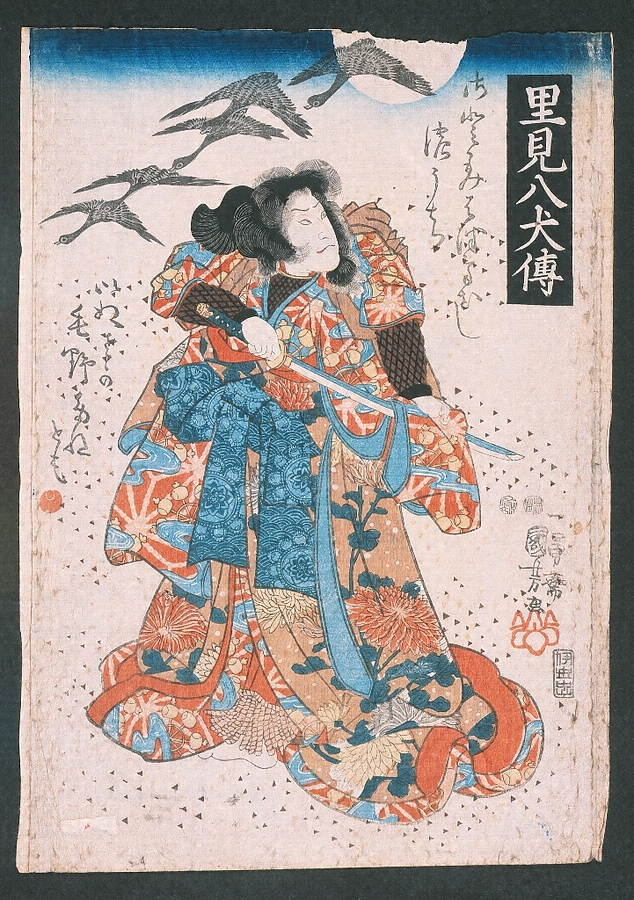 江戸市村座で八犬伝が上演されたときに発売された八犬士の役者絵。