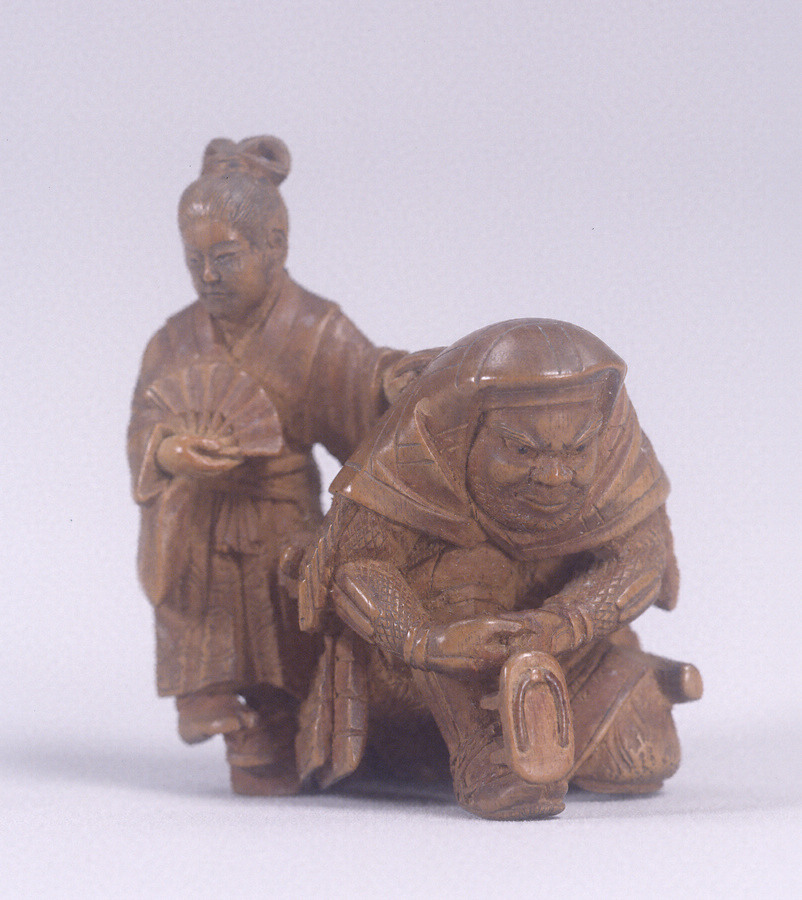 牛若弁慶木彫根付