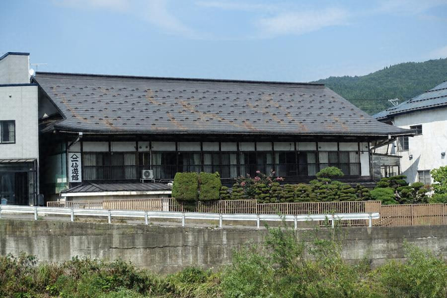 平川沿いに南面して建つ旅館。建築面積三二八平方メートル、木造二階建鋼板葺で、北面中央に玄関を開き、左方に座敷等を、右方に帳場等を配す。玄関奥の階段を上がった二階には、東西に中廊下を通して南北に客室を並べる。大鰐温泉の往時の景観を今に伝える。