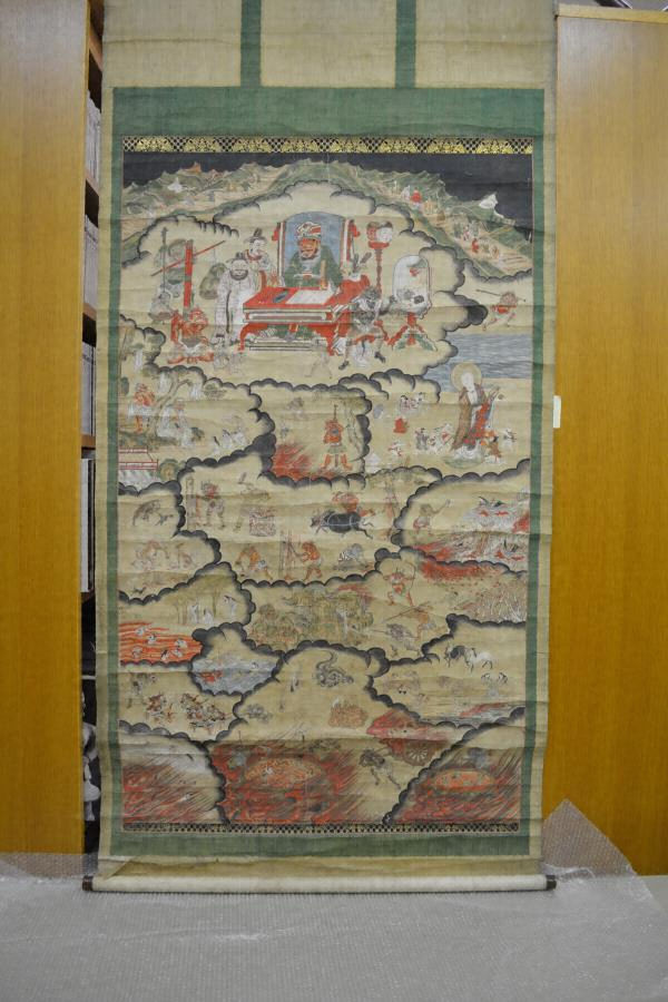 本作品には寛政二年本『和字絵入往生要集』(1790)からの影響が見て取れ、制作時期は1790年以降となる。また、「南海山地蔵尊御絵」との表書が気になるものの本作品を収納する箱の箱裏には「文化十三年(1816)丙子五月上旬出来」とあり、本作の制作時期自体はこの墨書の示す時期と大きくは隔たらないと考えられる。