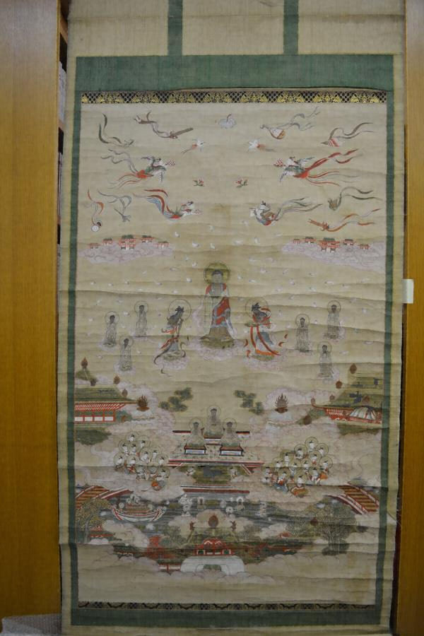 南海山地蔵寺に伝来した本作は、地蔵寺が無住となった後、常照院にて保管され、祭礼の折のみ地蔵寺の堂内に掛けられていた。現在は高浜市へ寄贈され、高浜市やきものの里かわら美術館で保管されている。本作は「地獄極楽の絵巻物」と呼ばれて伝来し、一幅に六道の情景を、もう一幅に浄土の情景を描く。