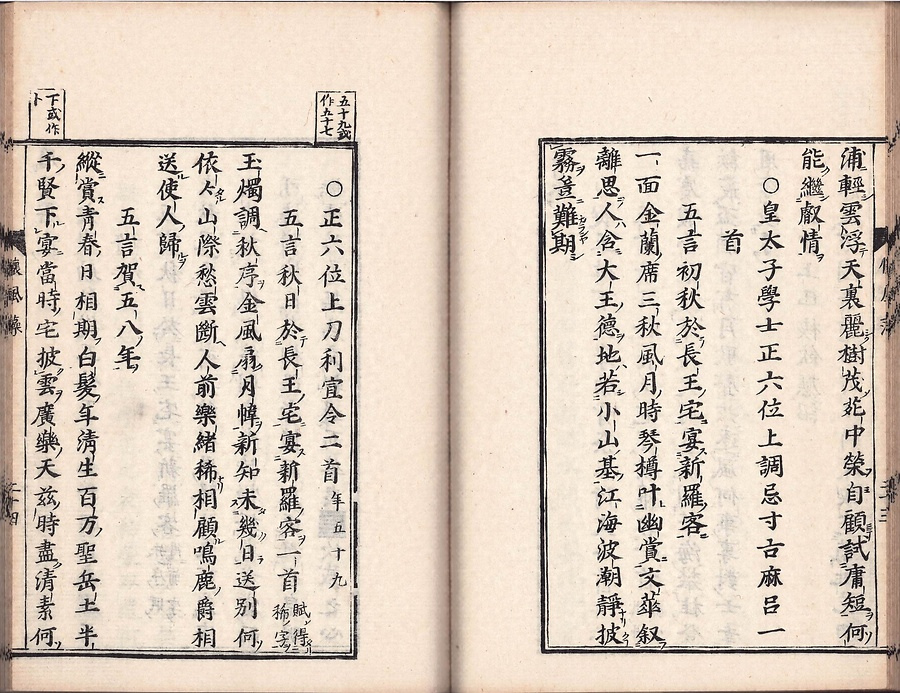 現存する日本最古の漢詩集。編者は未詳だが淡海三船編などの説がある。天平勝宝3年(751)成立。巻頭に序文、目録を置き、年代順・作者別に詩を連ねる。本資料は寛政5年(1796)刊。伊予国関係では、伊予国司を務めた刀利宣令らの漢詩(養老7年(723)長屋王宅の新羅使饗宴での作)などが見られる。