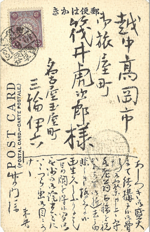 宛先 越中高岡市御旅屋町 筏井虎次郎