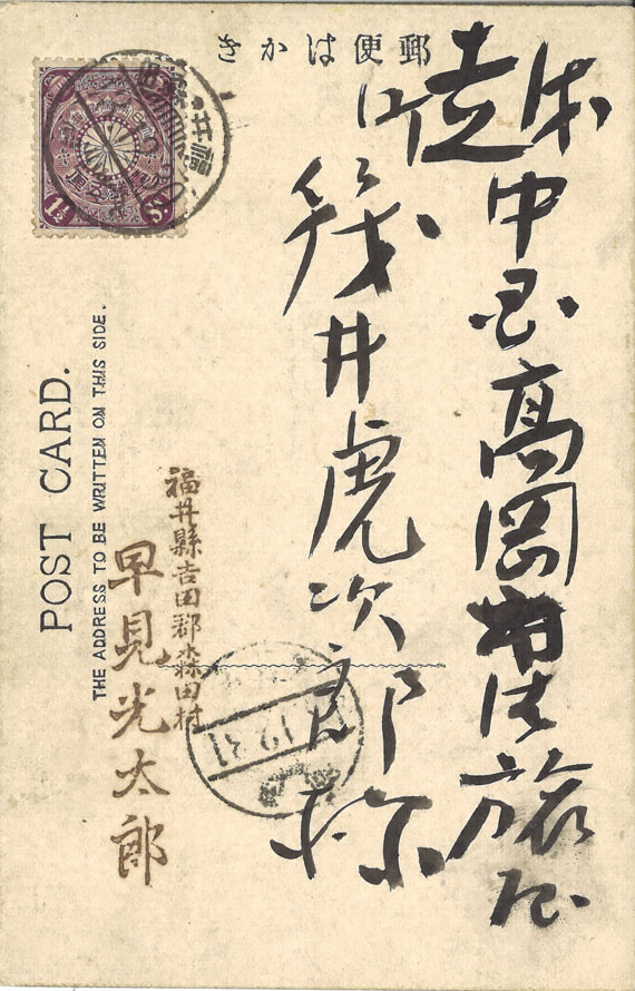 差出人 福井県吉田郡森田村 早見光太郎(19)