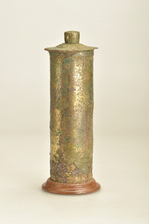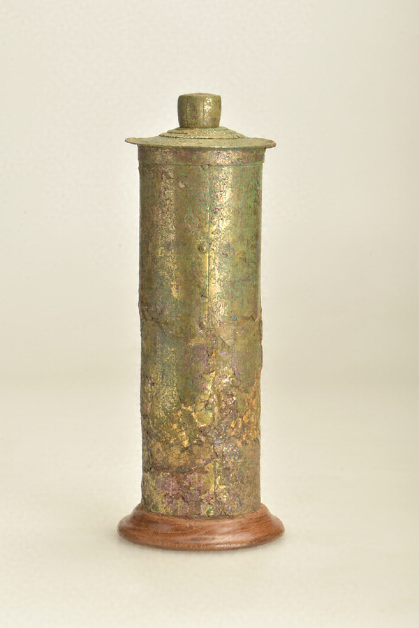 総高23.8㎝、現高25.4㎝、筒径6.8㎝、蓋高3.8㎝、蓋笠径8.5㎝、蓋鈕高1.8㎝、蓋鈕径2.4㎝、現底径9.8㎝