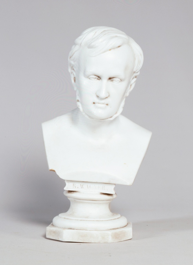 リヒャルト・ワーグナー(1813-1883)はライプツィヒ生まれの作曲家。この胸像の製作当時には、ドイツ三月革命に参加したことによる追放令も解除され、バイエルンに住んでいました。