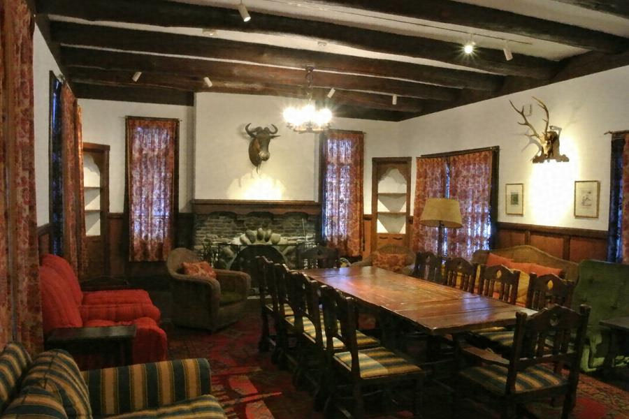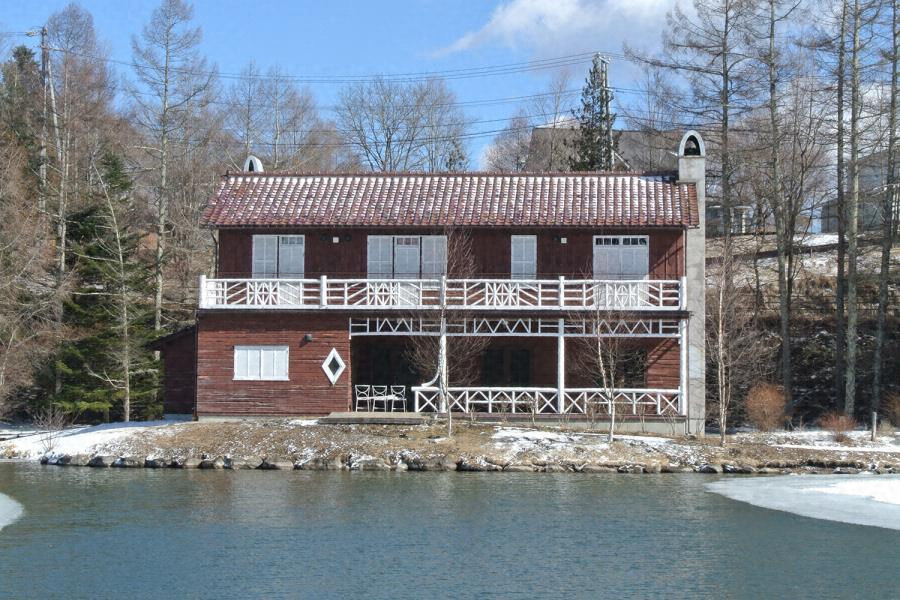実業家朝吹常吉の別荘。L字型平面で、一階はテラスを中心に暖炉付の広間、和室を、二階は四寝室を配していた。外壁の割丸太や内部の丸太材の化粧梁など野趣豊かで、モルタル塗の煙突をバランスよく配する。ヴォーリズ建築事務所による代表的な山荘建築。