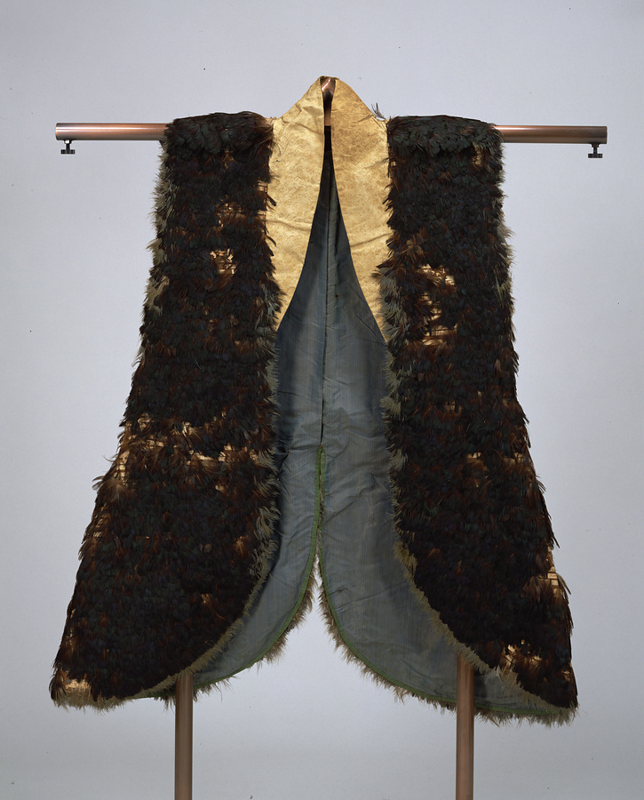 徳川家康の四天王とたたえられた武将、榊原康政【さかきばらやすまさ】(1548~1606)所用と伝えられる陣羽織。表面に鳥毛を植え込み、背中央には「太」「白」の文字が白い鳥毛で表わされる。通常の衣服とは異なる素材を用いた奇抜なデザインは戦場で武勇を鼓舞するためと考えられた。