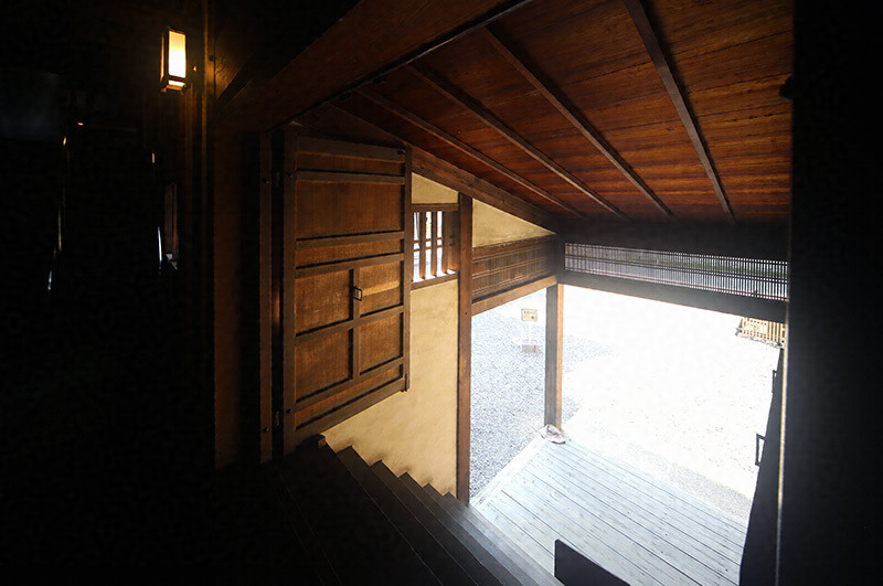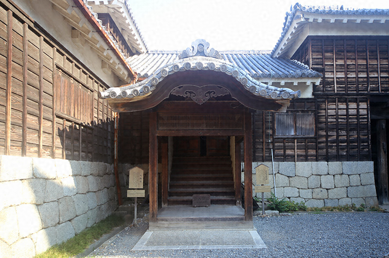 玄関多聞櫓の南面西寄りに接続して建つ。式台と玄関多聞櫓に上がる階段からなり、上り勾配の向唐破風本瓦葺の屋根をかける。式台は側面に壁を設けず開放とし、正面柱上の虹梁に蟇股、小壁に筬欄間を備えるなど、天守玄関にふさわしい格調高いつくりをみせる。