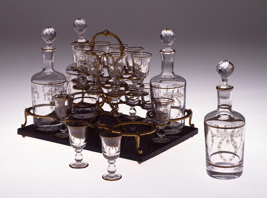 金彩栓付ガラス瓶・脚付ガラス杯揃い