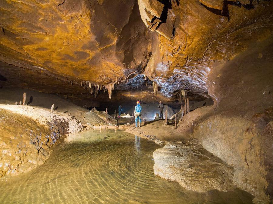 空間規模が大きく、洞内はホール、渓谷部、地下河川、地底湖及び迷路状の通路など起伏に富んだ構造をしている。
