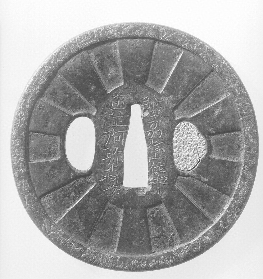 丸形鋤彫鉄鐔 銘正阿弥森次