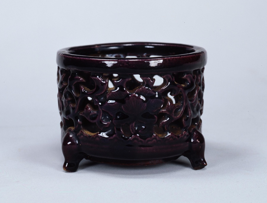 紫釉唐草透文香炉