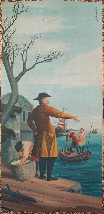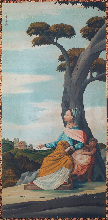 日本の油彩画に関しては、司馬江漢はパイオニアというわけではありませんでしたが、注目すべきは、ヨーロッパの人々が様々な労働にいそしむ姿を主題として扱ったことです。そのモチーフの手本となったのは1694年にアムステルダムで初版が出された『人間の職業』という挿絵本でした。挿図で示された百の職業を譬喩とする訓戒的な詩文集で、その扉絵と、船員の仕事を描いた挿図をもとにして、江漢はこの対幅の男女図を描きました。ヨーロッパ諸国が日本や中国より長い歴史を有し、様々な学問や技術、社会制度を充実させてきたと、江漢は自らの著書などで礼賛してきました。その先進文明を支えているのが、勤勉で有能な国民で、彼らを良き方向に導いてきたのが、『人間の職業』のような訓戒本だと主張しました。男性図に朱字で記された"Eerste Zonders in Japan Ko:"というオランダ語風の記述については「日本における最初のユニークな人物」と解釈されています。