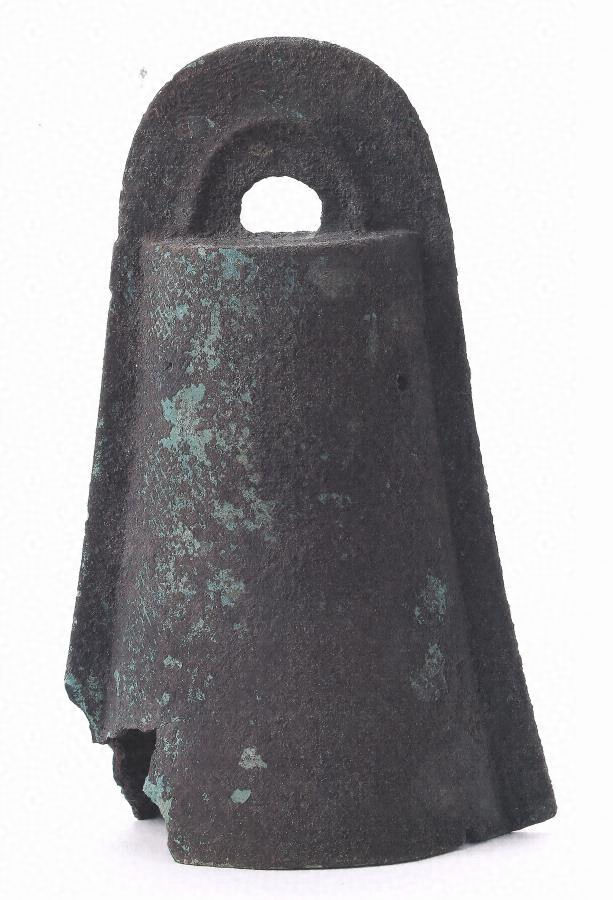 扁平鈕式古段階に相当する銅鐸で、身部の鰭近くに斜格子文が確認され、4つの方形区画の文様が認識されることから、四区袈裟襷文銅鐸と判断される。鈕には流水文が表現される。身部内面下部には内面突帯が巡るが、上面が使用により摩滅していることから、内部に舌を下げて鳴らした「聞く銅鐸」としての使用が分かる。