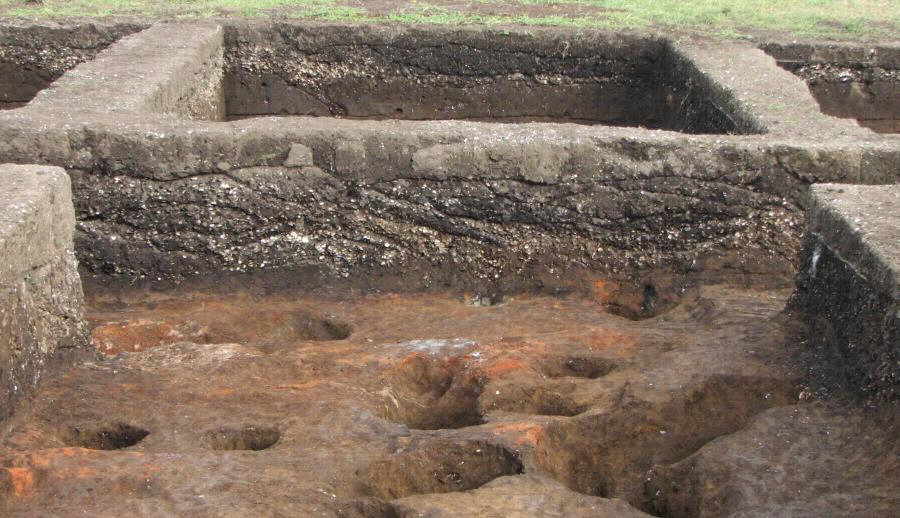 奥東京湾(おくとうきょうわん)最北部の汽水域に形成された縄文時代後期前半の馬蹄形貝塚(ばていけいかいづか)を伴う集落遺跡の中でも最大級の規模を持つ遺跡。集落域と貝層のほぼ全体が良好な状態で保存されており,豊富な動植物遺存体(どうしょくぶついぞんたい)と出土石器等から,集落を営んだ人々の生業形態とその地域性を知ることができる点で重要。