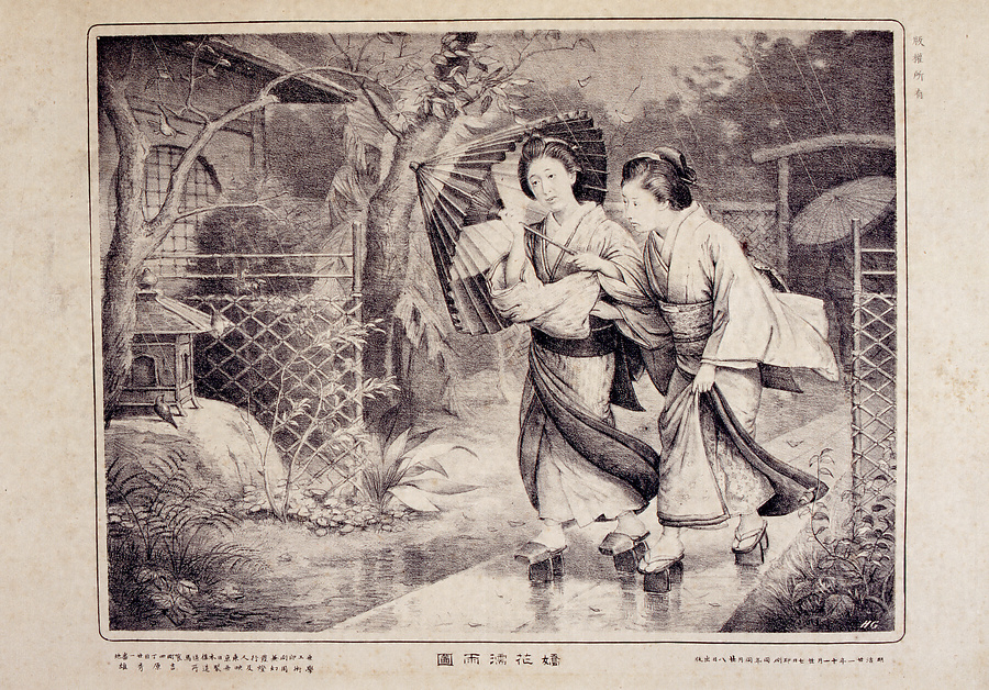 嬌花濡雨図