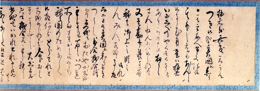18世紀に入るとロシア船が千島列島を南下し、日本近海に姿を現すようになります。日露間の緊張が高まる中、文化8年(1811)測量のためにクナシリ島に上陸したロシア艦長ゴロウニンらが幕府役人に捕らえられ、箱館に監禁される事件が起こります。この書状は、翌年8月に高田屋嘉兵衛が報復としてクナシリ島沖で捕らえられた際に、弟たちに書いた手紙です。両国の確執を調停しようとする強い意気がうかがえます。嘉兵衛の尽力が功を奏し、ゴロウニンらは翌年釈放されます。嘉兵衛(1769-1827)は、明和6年(1769)淡路国津名郡都志本村(現兵庫県洲本市五色町)に生まれ、兵庫津に出て廻船業者となり、蝦夷地との交易で活躍しました。寛政11年(1799)にはエトロフ島航路を確定するなど、幕府の蝦夷地経営に深く関わりました。晩年は郷里で港湾修築などに寄与し、同地で亡くなりました。
