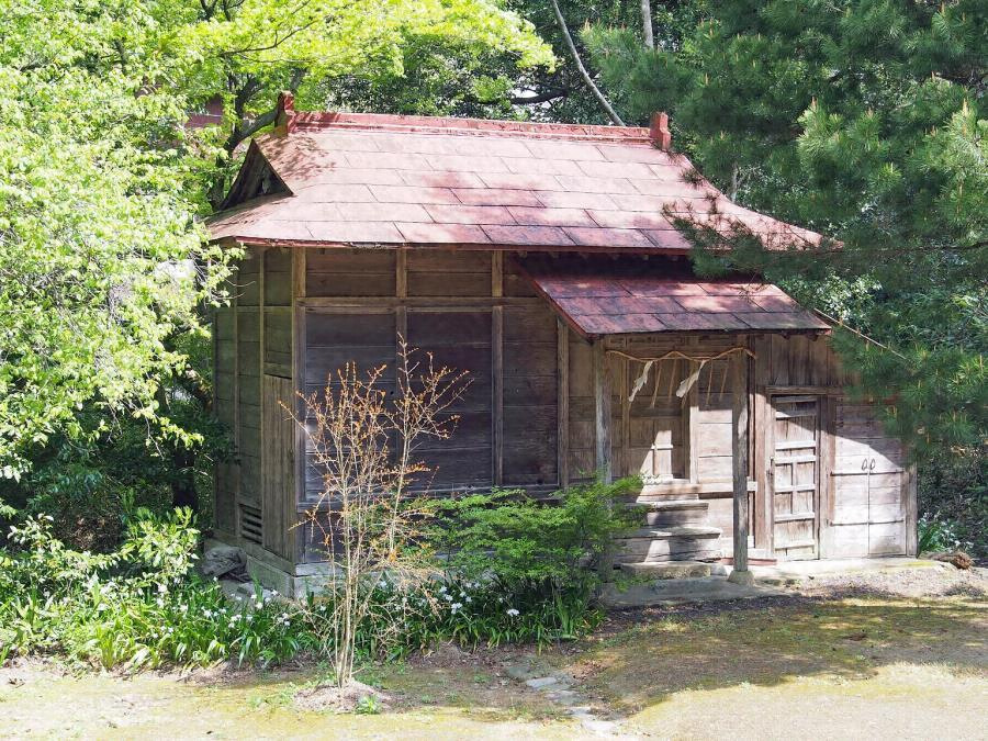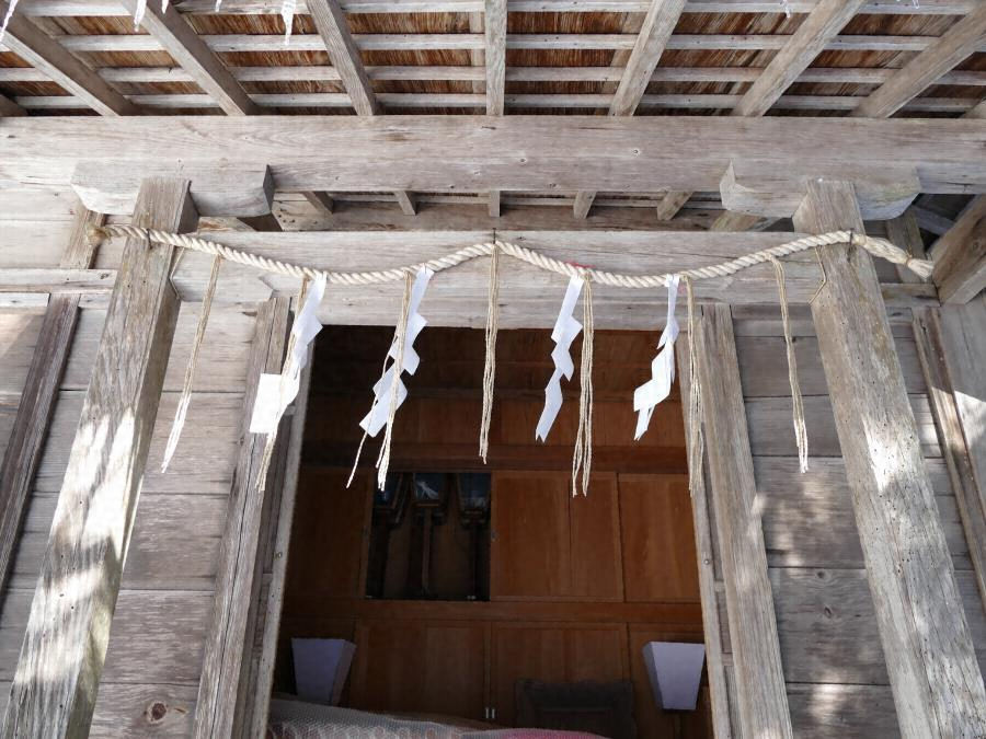 本殿北側に南面して建つ。桁行二間半梁間一間半の入母屋造鉄板葺で、正面東寄りに玄関、東側面に納屋を下屋で設ける。内部は玄関に面して三畳間を設け、北面全面を押入とする。西半は土間とし、西側面に勝手口を開く。近代的な境内の構成を伝える社殿である。