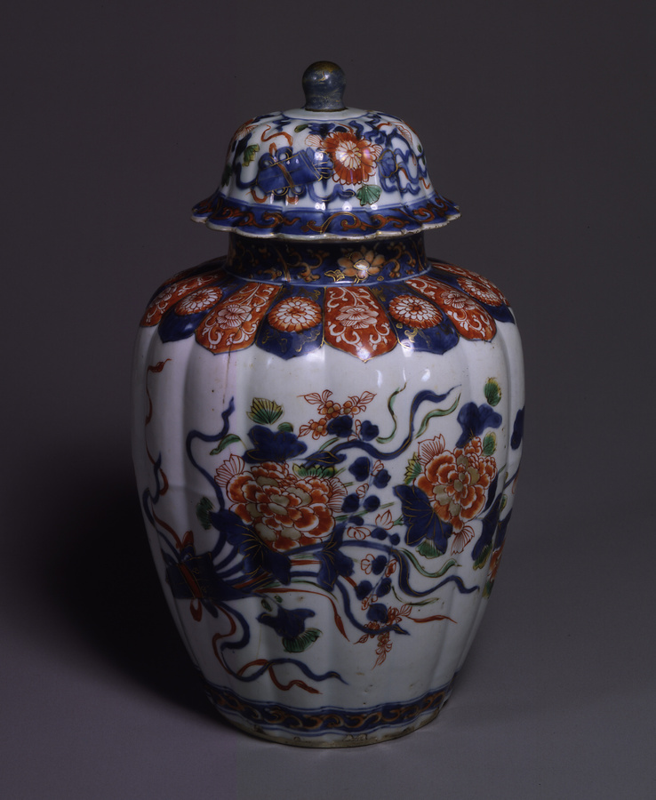 五彩花卉文有蓋壺