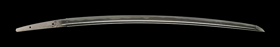 相模国(さがみのくに)(神奈川県)の刀工、正宗の代表作のひとつです。正宗は新藤五国光(しんとうごくにみつ)の弟子で師の作風を発展させ、沸(にえ)出来の妙を見事にあらわして相州伝(そうしゅうでん)を完成させました。その名は能楽の観世家に伝わったことに由来し、観世家から徳川家康に献じられ、明治に徳川慶喜から有栖川宮熾仁(ありすがわのみやたるひと)親王に献上されました。