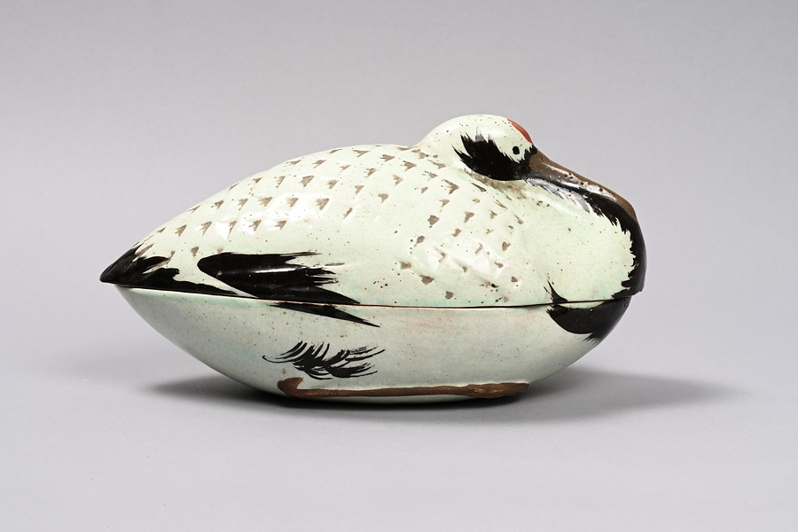 色絵鶴蓋物 「吉向」印銘