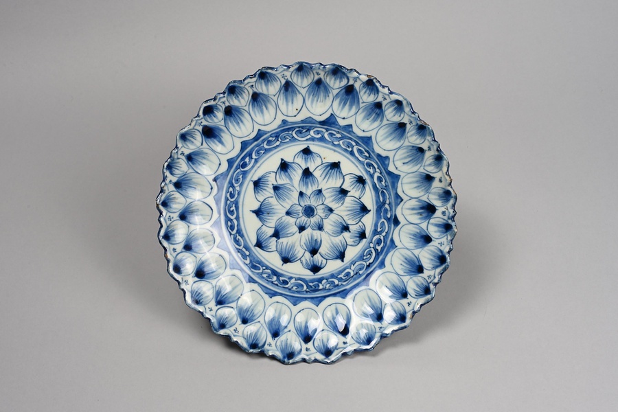 青花蓮弁文輪花皿