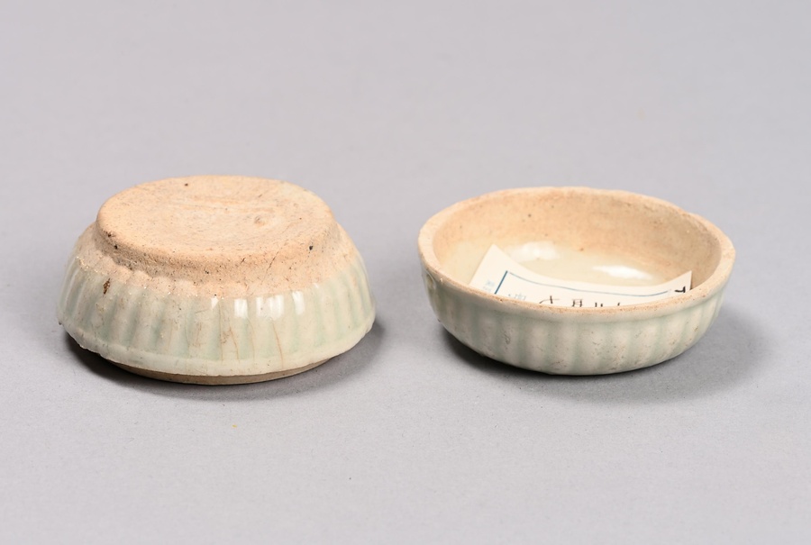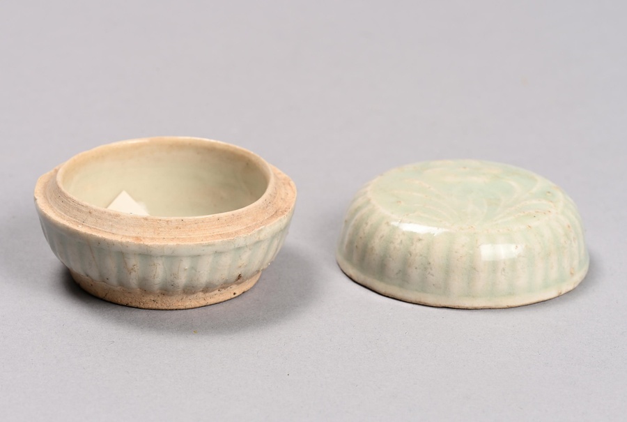 白磁印花草花文合子