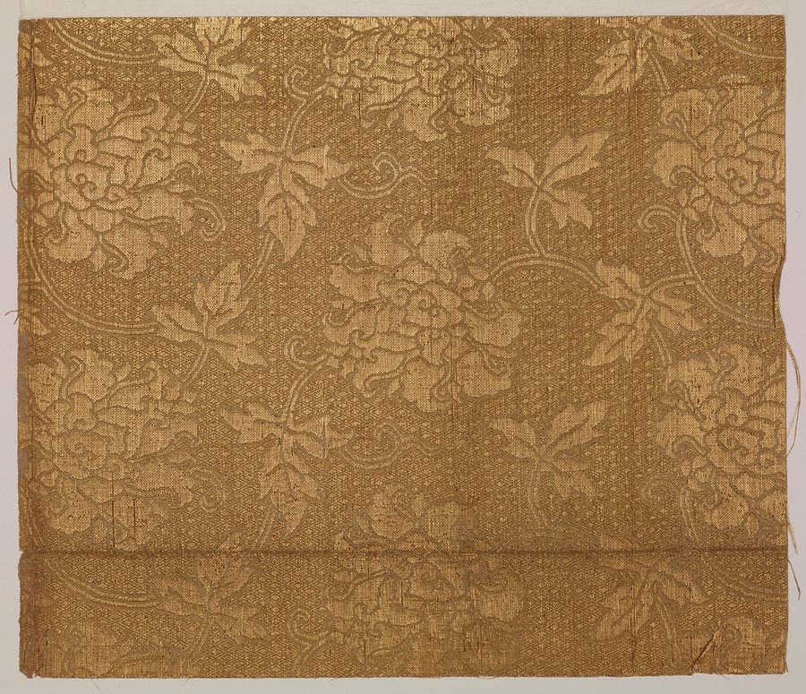 白綸子地染繍小袖裂