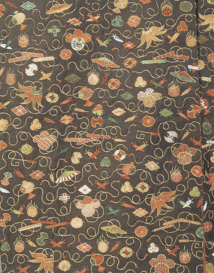 腰巻 黒練緯地宝尽模様