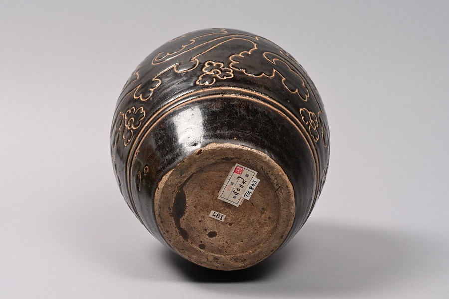 黒釉刻花牡丹文瓶 磁州窯