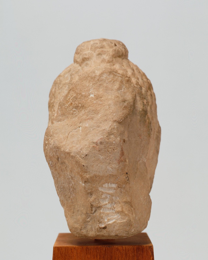 卵型の顔、螺髪(らほつ)、弓形の隆起線で表された眉、伏し目といった特徴から、グプタ朝(4~6世紀)の制作とわかる。この時代の仏教彫刻は、マトゥラーとサールナートを2大センターとして、盛んな造像活動が行なわれた。