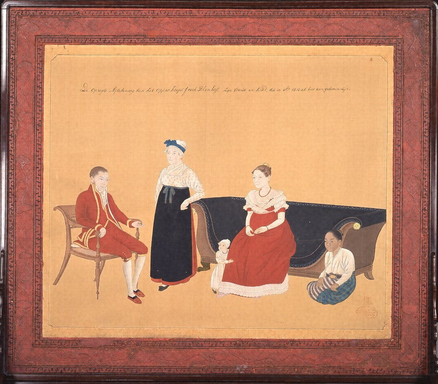 題記「De Opregte Aftekening van het opper hoofd f:cock BIomhoff, Zyn vrouw en kind, die in Ao1818 al hier aan gekomen Zyn,」