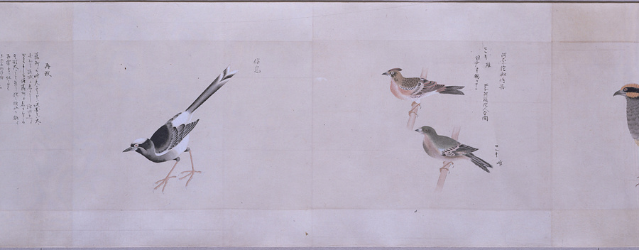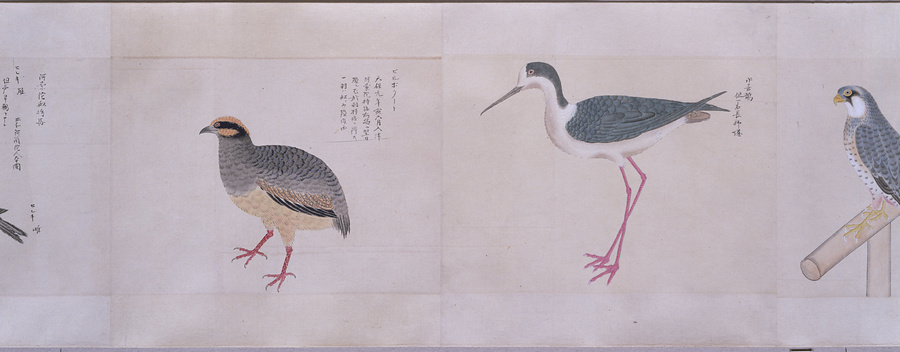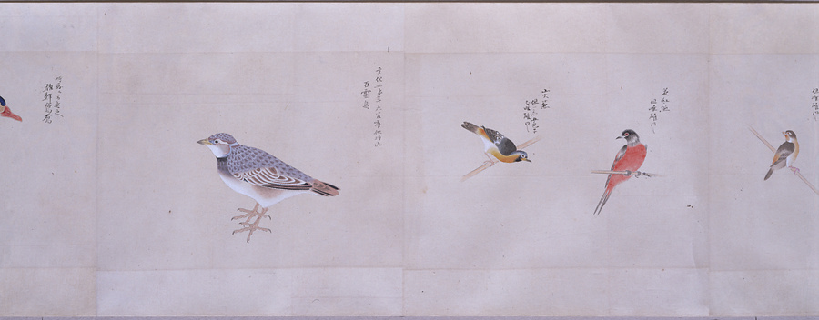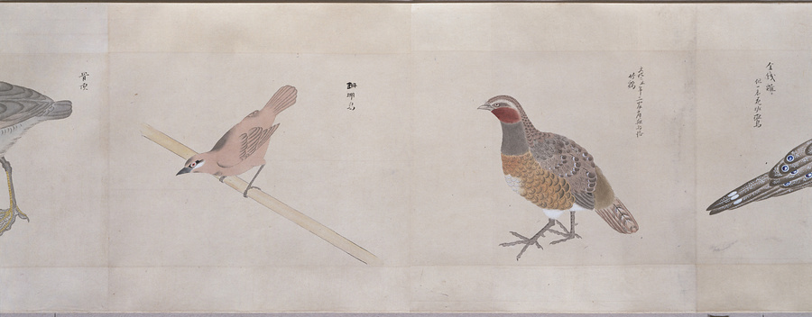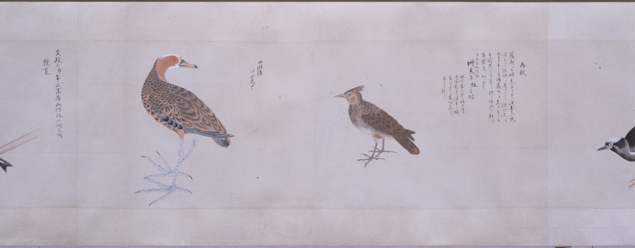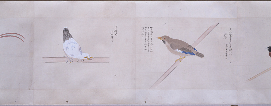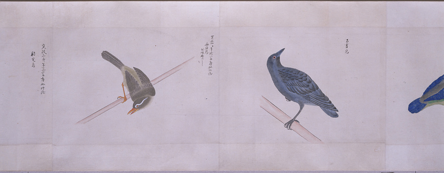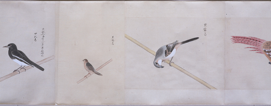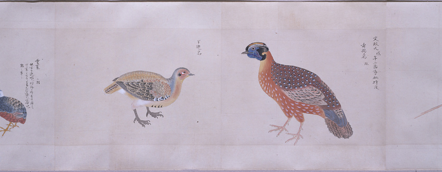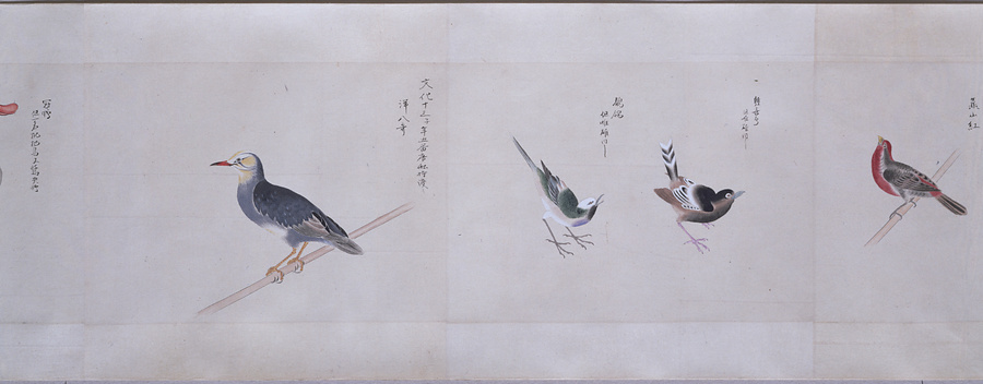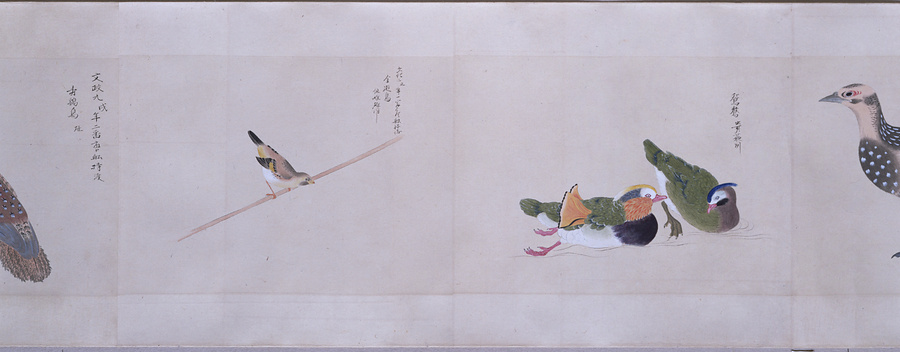 中国、オランダの船で輸入された鳥獣の博物図譜で、名称と渡来年などを記す。幕府に報告用の『唐蘭船持渡鳥獣之図』(慶應義塾大学蔵)と酷似する図や、大名の飼育する鳥なども含まれる。長崎奉行所の控図をもとに、文政から天保年間(1818~29)に写されたと思われる。