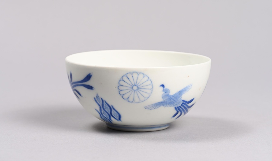 染付有職文茶碗