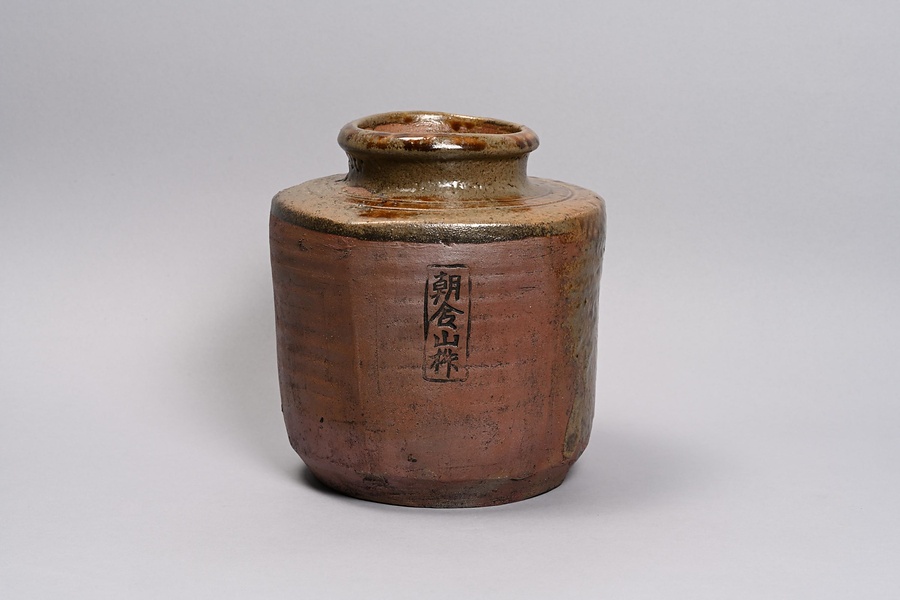 江戸時代前期の丹波では、名産の山椒を保存する器として、「朝倉山椒」「朝倉山椒煮」という印刻を施した壺がつくられました。朝倉山椒壺と呼ばれるこの壺は、室町時代末から江戸時代初期に盛行した肩衝形の壺を祖形とし、面取した六角のほかに丸形や瓢形も伝わります。ルビ:さんしょう かたつき