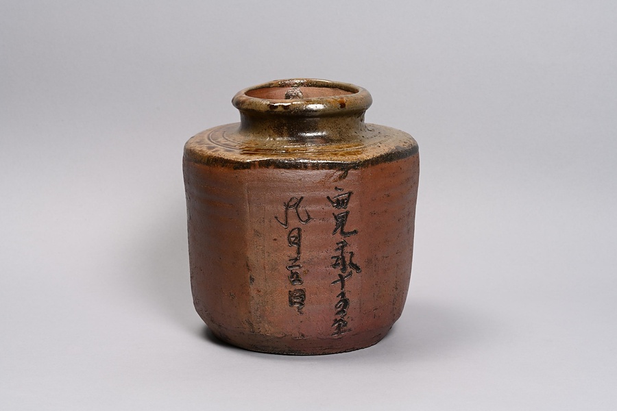 褐釉六角壺 「寛永十五年九月吉日」刻銘