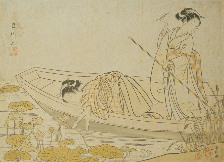 舟中蓮とる二美人