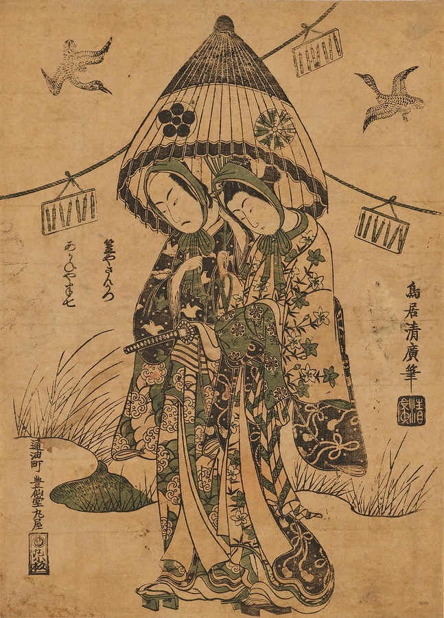初代中村富十郎の笠やさんかつと初代山下又太郎のあかねや半七