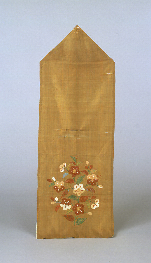 安土桃山時代までは、僧侶役が被る角帽子の額の部分と後ろ裾の部分に、草花を刺(し)繡(しゅう)する風流な趣向があった。世阿弥(ぜあみ)の『申(さる)楽(がく)談(だん)儀(ぎ)』にも「角帽子の縫物」という記述がある。江戸時代以降は、金(きん)襴(らん)や緞(どん)子(す)といった中国風の高級な織物を用いることが主流となった。