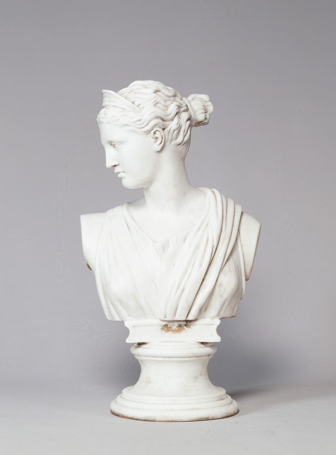 「ヴェルサイユのアルテミス」は本来シカを連れた全身像なのですが、この白磁像では胸像となっています。