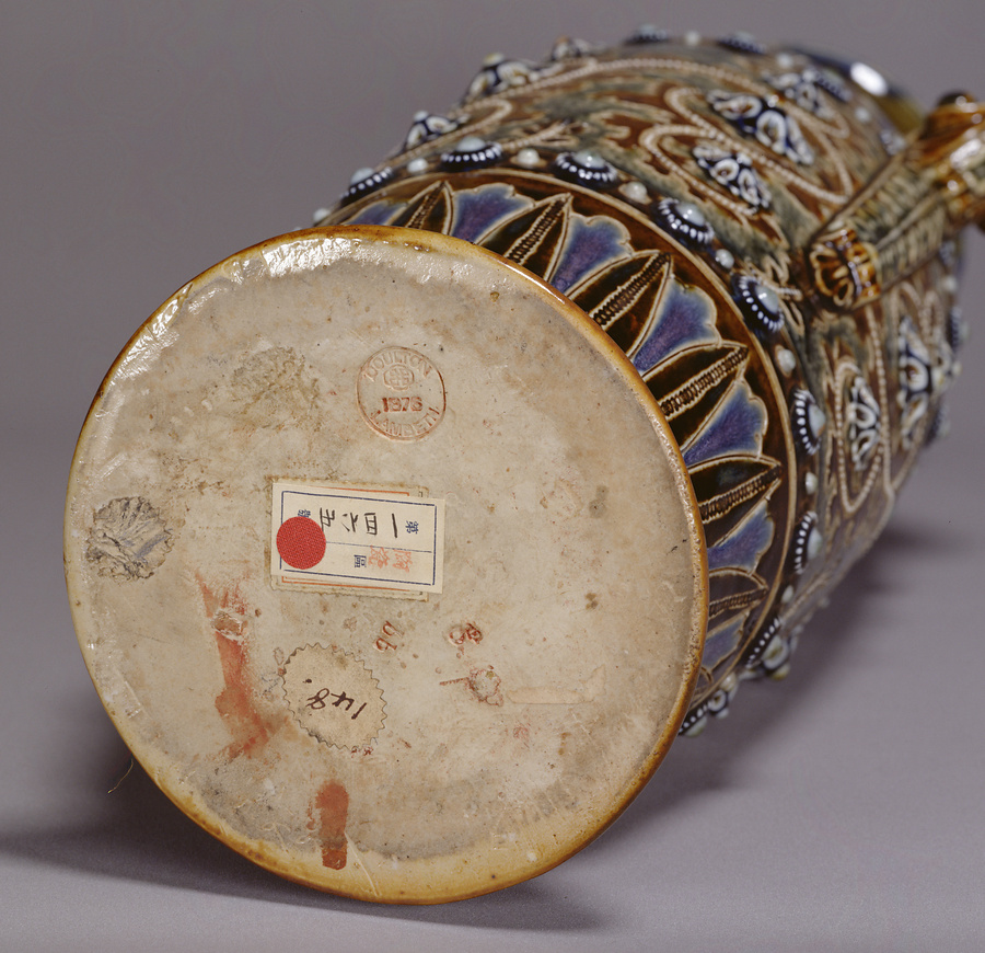 色絵唐花浮文花瓶 イギリス・ランベス窯ドルトン