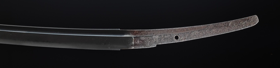 刀剣全体のほぼ真ん中を中心にして全体に反りがつき、その曲線美が描く形には無駄がありません。この太刀は、約800年前に作られて以来、研ぎ減りによる多少の変化はあるものの、大きな形の変わりはなく現在まで伝えられた貴重な作品です。作者の定利(さだとし)は、鎌倉時代の13世紀前半ごろの刀工で、京都の綾小路(あやのこうじ)に住んでいたとされています。この太刀は定利の代表作として著名です。ピカピカと光る刃(は)のある部分で、黒くみえる部分と白く見える部分の間にみえる「刃文(はもん)」という光り輝く線のような模様に注目してみましょう。何とも言いがたい細かく複雑な部分が比較的目立ち、このような刃文は12世紀の終わりから13世紀前半までの各地の刀剣で多く見られるものです。定利の作品には、これより後に流行した大模様の模様の刃文の刀剣もあり、この作品が比較的古い作風を示しているのがわかります。