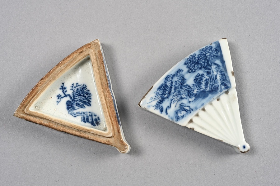 染付団扇文扇形水滴