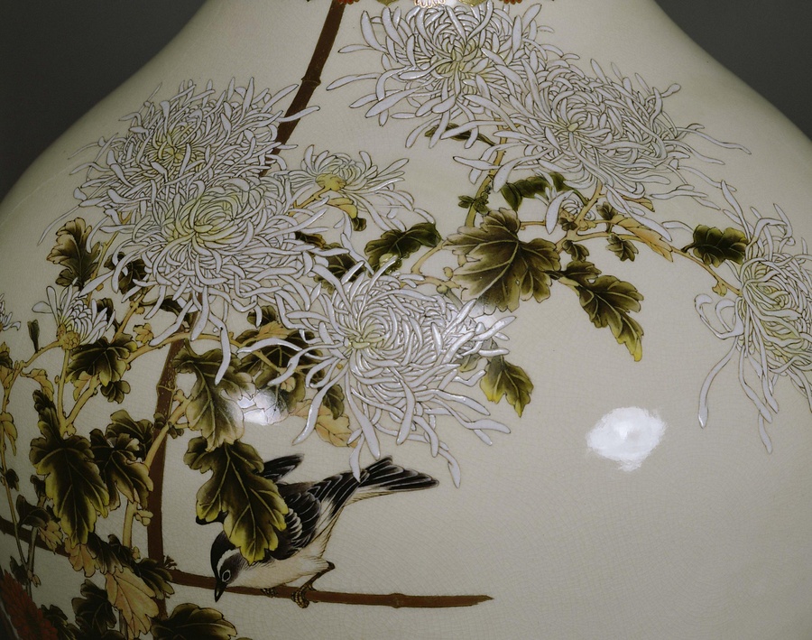 色絵金襴手花鳥文大瓶