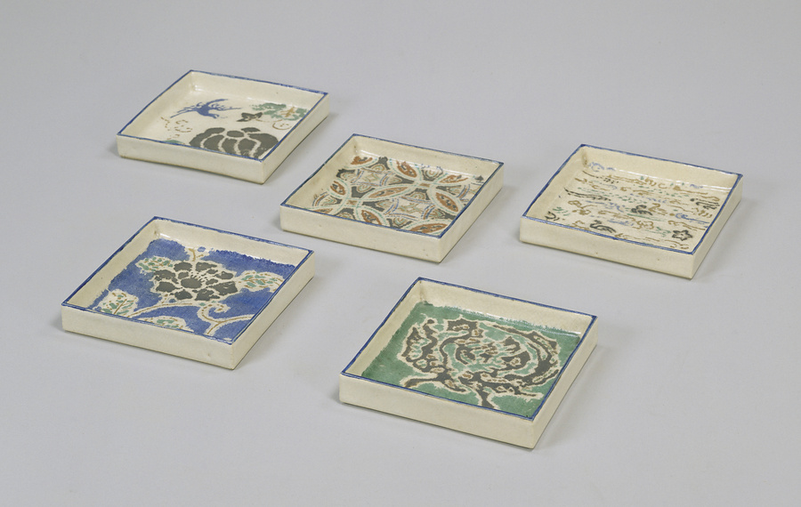 永樂和全は京都で代々、土風炉ややきものの制作を続けている千家十職の一つ、永樂善五郎家の12代。幕末から明治にかけて活躍し、京都のほか九谷でも作陶を行ないました。本作のように陶胎に布目で文様をあらわした独特の表現や、中国磁器に倣った金襴手を得意としました。