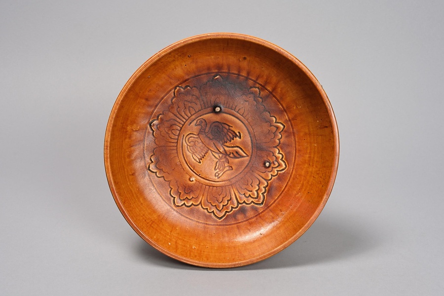 黄釉瑞鳥文盤